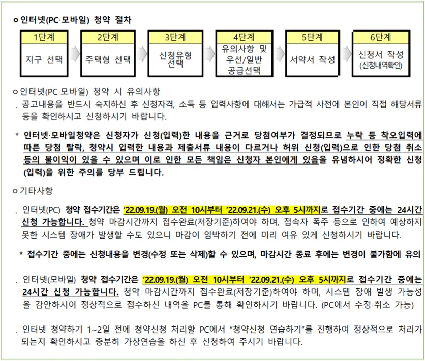 • 청약자격 미숙지, 착오 신청 등에 대해서는 청약자 본인에게 책임이 있으니 불이익을 당하는 일이 없도록 유의하여 주시기 바랍니다.