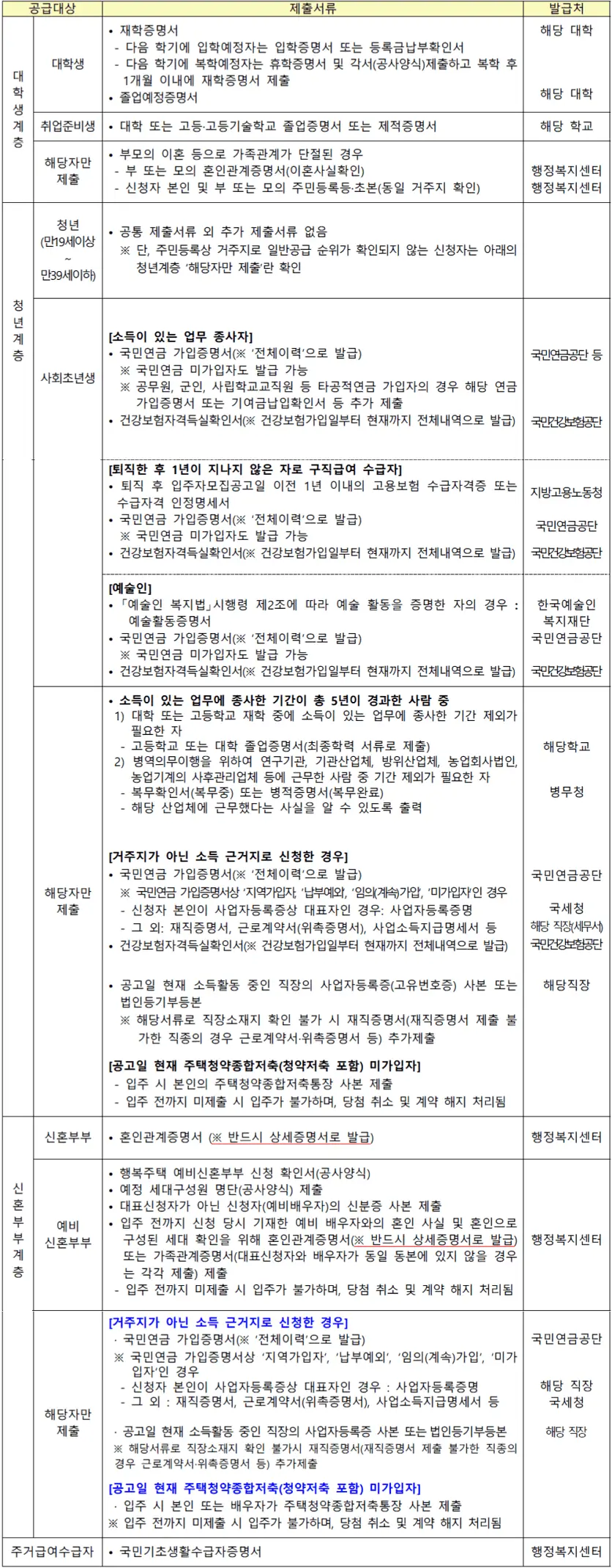 • 상기 신청자격에 따라 임대조건이 달리 적용되오니 해당 신청자격별 세부기준을 확인하신 후 신청하시기 바랍니다.