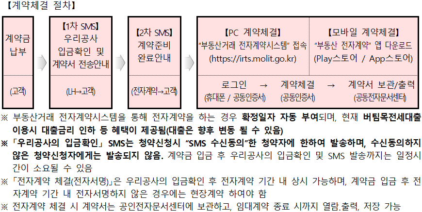 • 계약금 입금 후 전자계약기간내 온라인으로 계약체결 가능 (개인별 가상계좌 및 전자계약 상세절차는 추후 당첨자에게 개별 안내 예정)