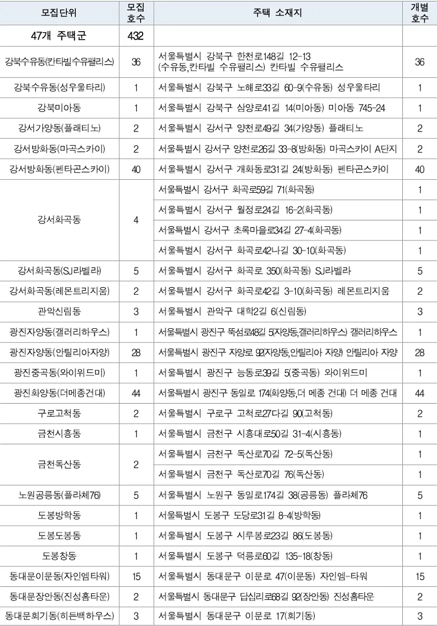 2023년 1차 서울시 청년매입임대공급주택 목록