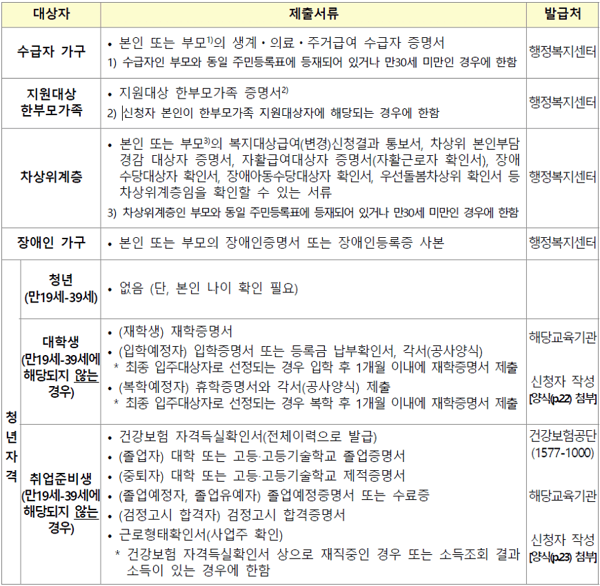 청년 매입임대주택 자격요건 확인 구비서류