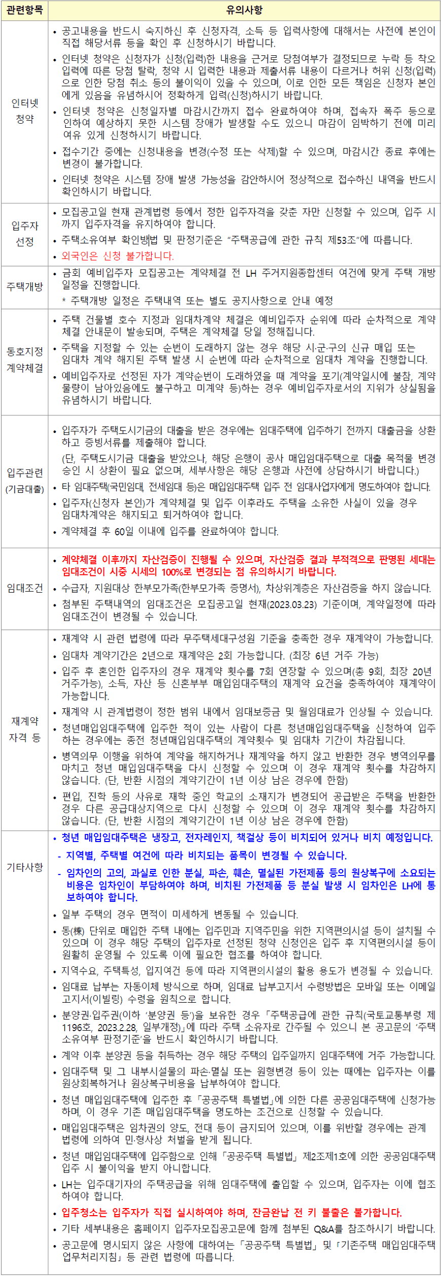 • (기준일) 모집공고일은 2023. 06. 22. (목)이며, 이는 입주자격 (신청자격, 나이, 세대구성원, 주택소유, 자산, 소득 등)의 판단기준일이 됩니다.