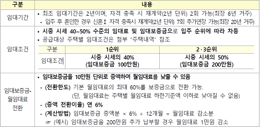 입주자격, 임대조건, 신청방법, 우선공급 등