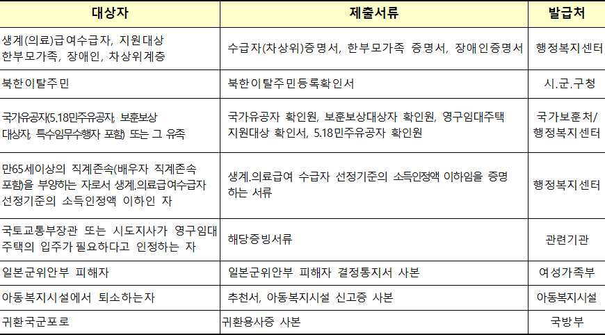 | 문의처 | ▪ 서울특별시 관내 동 주민센터 ▪ 한국토지주택공사 전국 대표전화 (콜센터) ☎ 1600-1004 (평일 09 ~ 18시) |