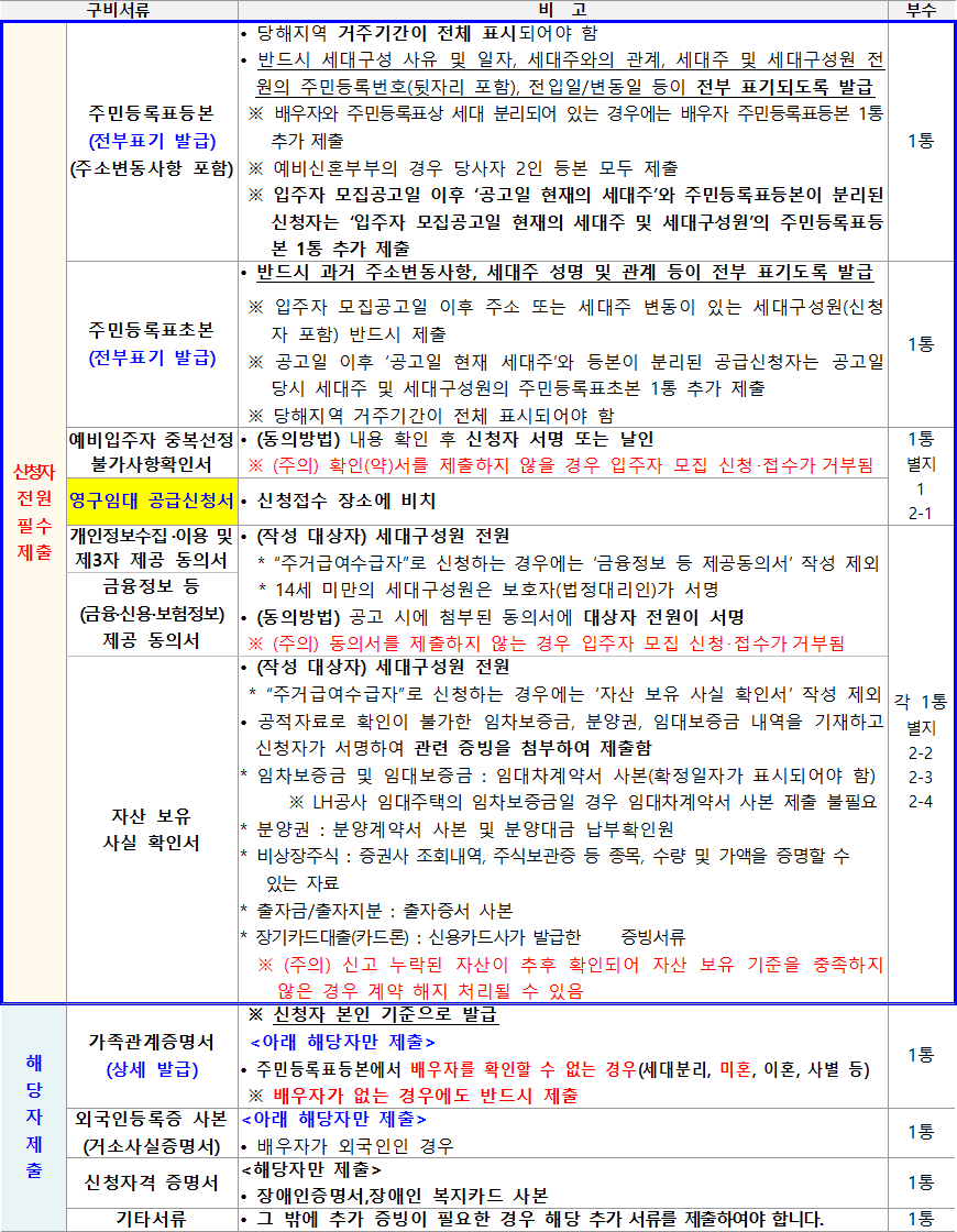 ② 입주대상자는 아래의 계약서류를 준비하여 지정된 기간 내에 계약을 체결해야 합니다.