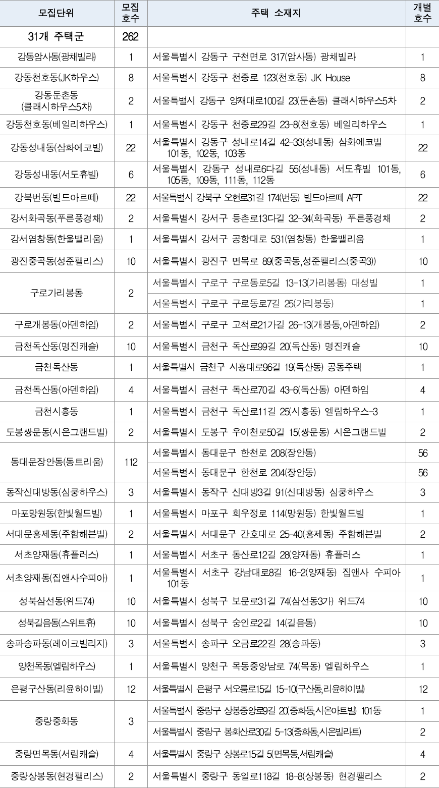 • 위 공급호수는 기존에 선정된 예비입주자 계약 및 신규 매입물량 추가 등으로 변경될 수 있습니다.