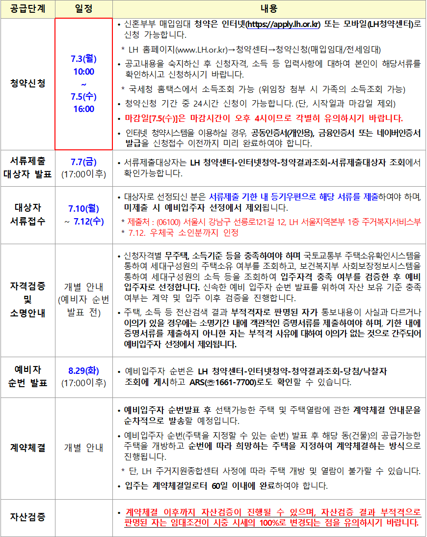 – 단, 계약체결 이후 자산검증이 진행될 수 있으며, 자산검증 결과 부적격자로 판명되는 자는 임대조건이 시중 시세의 100%로 변경되는 점을 유의하시기 바랍니다.