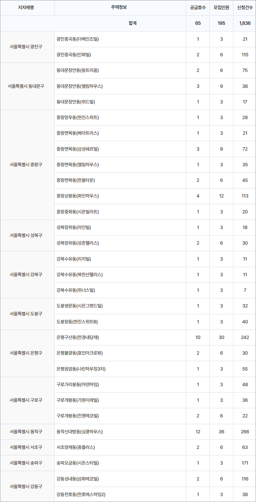 • LH 서울시 기숙사형 청년주택 강서구, 광진구, 동대문구, 서대문구, 성북구, 영등포구, 은평구, 종로구 2026년 1차