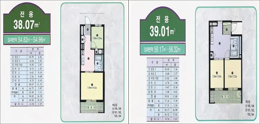 서울신림1 50년 공공임대주택 평면도 38형 39형