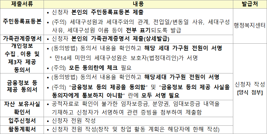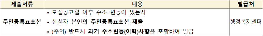 ① 공고일 이후 발급한 서류만 인정하며, 제출하신 서류는 반환하지 않습니다.
